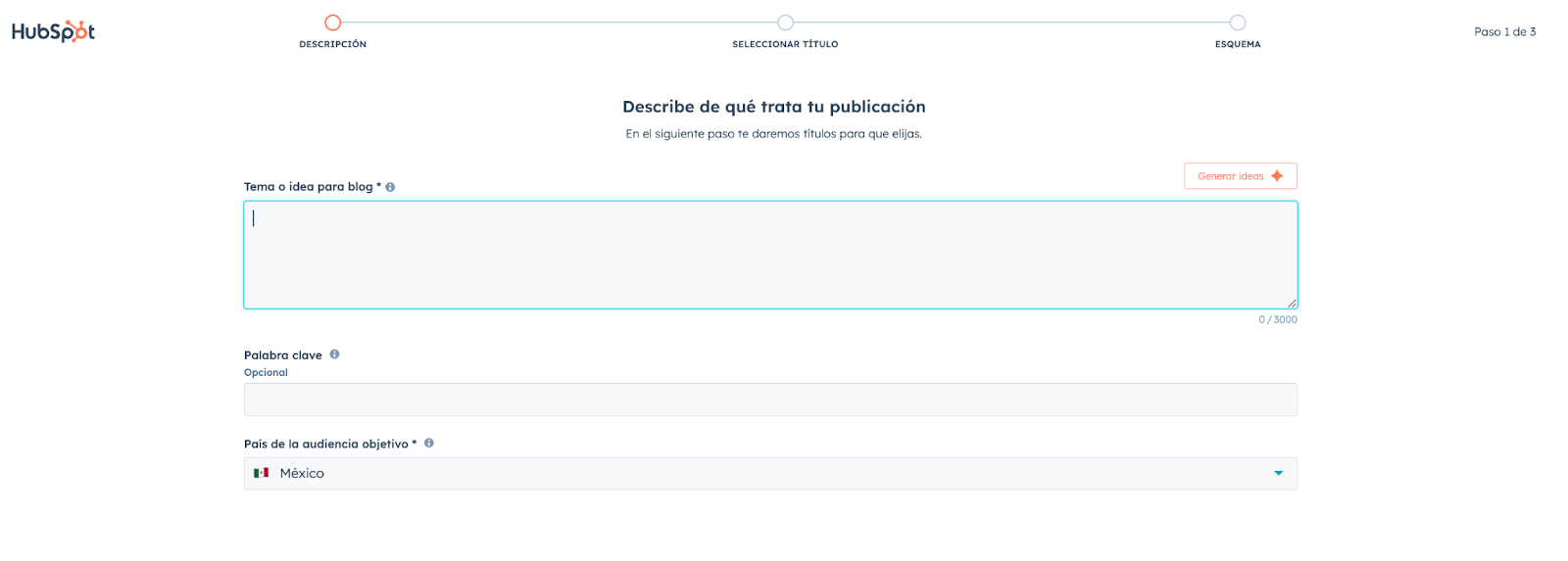 Para usarlo, solo tienes que ingresar información básica a la entrada y pedirle al asistente que te genere un esquema para, posteriormente, editarlo, mejorarlo y poder subirlo a tu sitio web.