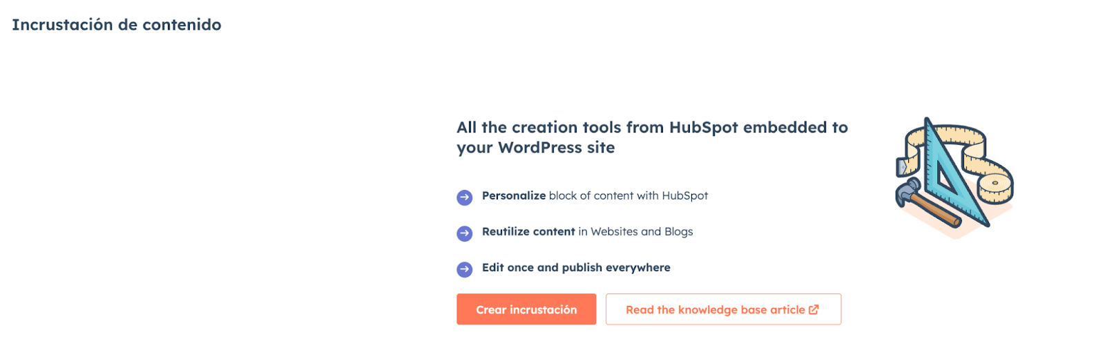 Puedes crear diferentes secciones de contenido en HubSpot e incrustarlas en WordPress o el mismo HubSpot sin necesidad de código.