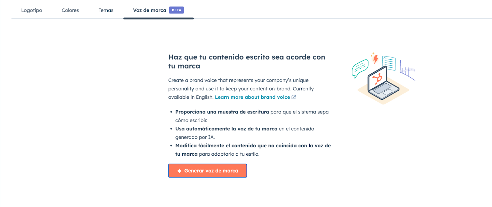 Lo primero que tienes que hacer es configurar la voz de marca para, después, aplicarla en tus contenidos nuevos o ya hechos.