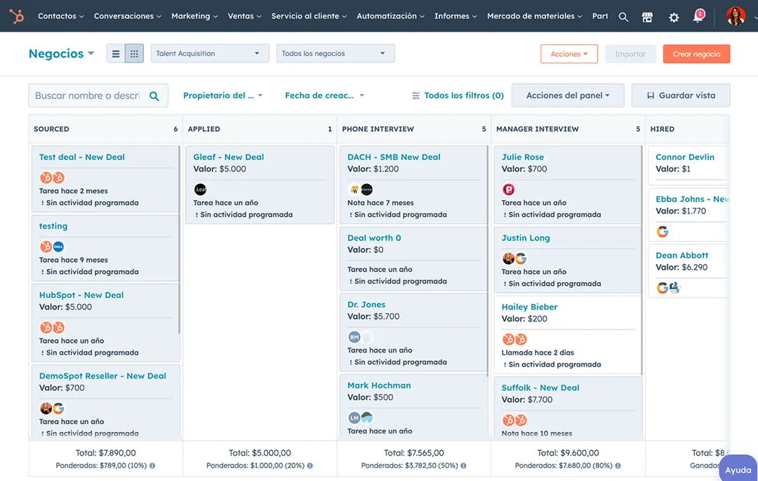 HubSpot permite asignar responsables por tarea, dar seguimiento a procesos y medir avances. Por ejemplo se puede: